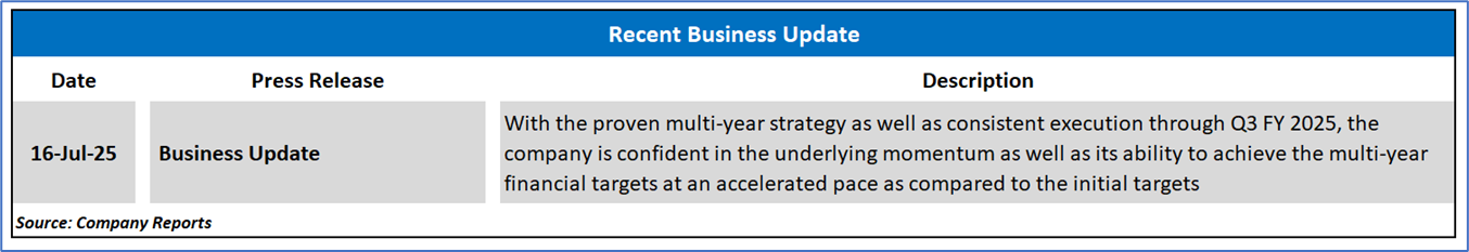 Note 3: Investment decisions should be made depending on an individual's appetite for upside potential, risks, holding duration, and any previous holdings. An 'Exit' from the stock can be considered if the Target Price mentioned as per the Valuation and or the technical levels provided has been achieved and is subject to the factors discussed above.