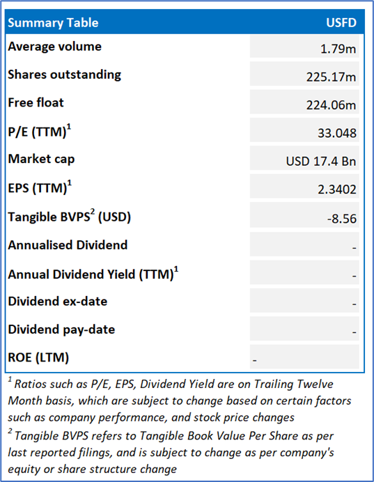 US Foods Holding Corp. (NYSE: USFD) is a foodservice distributor. It provides customers with a range of food offering and a comprehensive suite of e-commerce, technology and business solutions. It is primarily engaged in marketing, selling and distributing fresh, frozen and dry food and non-food products to foodservice customers.