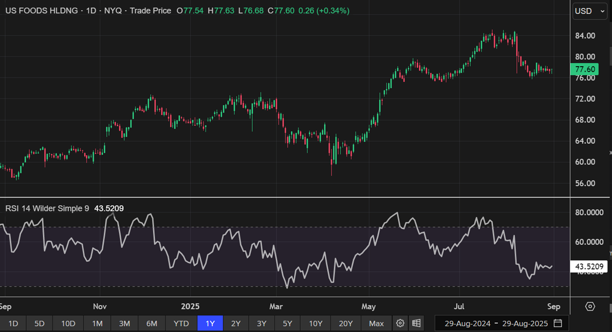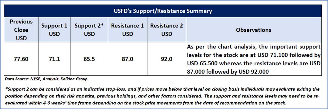 USFD Daily Technical Chart, Data Source: REFINITIV