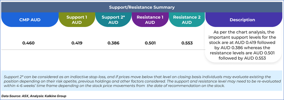 The stock price has gone up by ~3.86% in the last one month and over the last six months, stock prices increased by ~38.48%. The stock has a 52-week low and 52-week high of AUD 0.280 and AUD 0.500, respectively, and is currently trading above the average of the 52-high-week-low level. VAU was last covered in a report dated ’30 September 2024’.