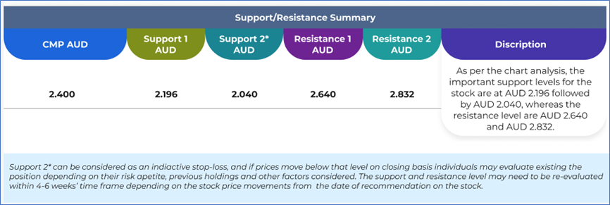 Note 3: Investment decisions should be made depending on an individual's appetite for upside potential, risks, holding duration, and any previous holdings. An 'Exit' from the stock can be considered if the Target Price mentioned as per the Valuation and or the technical levels provided has been achieved and is subject to the factors discussed above.