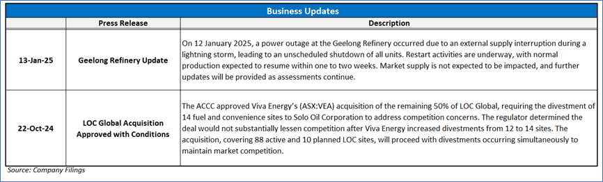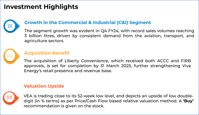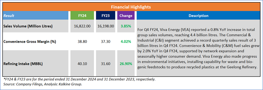 Viva Energy Group Limited (ASX: VEA) is an Australian company with over 120 years of history, specializing in convenience retail, commercial services, and energy infrastructure. The company operates a network of nearly 900 retail convenience and fuel stores across Australia and supplies fuels and lubricants to approximately 1,500 service stations. Viva Energy also owns and operates the Geelong Refinery in Victoria and runs various bulk fuels, aviation, bitumen, marine, chemicals, polymers, and lubricants businesses, supported by more than 20 terminals and 79 airports and airfields nationwide. Kalkine’s Resources Report covers the Investment Highlights, Key Financial Metrics, Risks, Technical Analysis along with the Valuation, Target Price, and Recommendation on the stock.