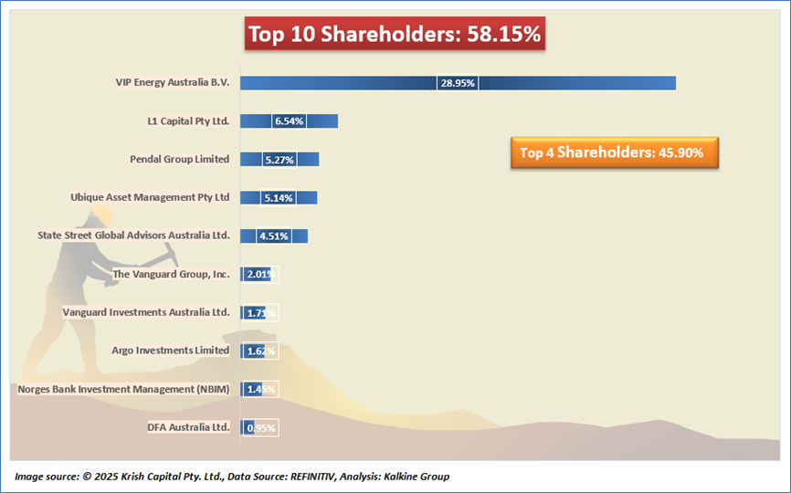 The top 10 shareholders together form ~58.15% of the total shareholding. VIP Energy Australia BV and L1 Capital Pty Ltd are holding maximum stakes in the company at ~28.95% and ~6.54%, respectively.