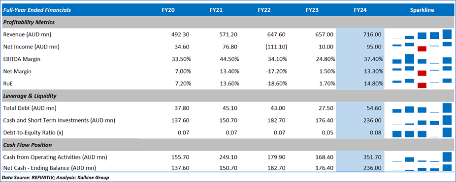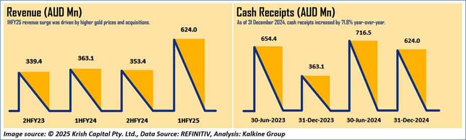 1.4: Key Metrics: WGX registered gross profit of AUD 126.2mn in 1HFY25 vs AUD 72.1mn in 1HFY24. Below is captured the metrics showing the trend of revenue and cash receipts: