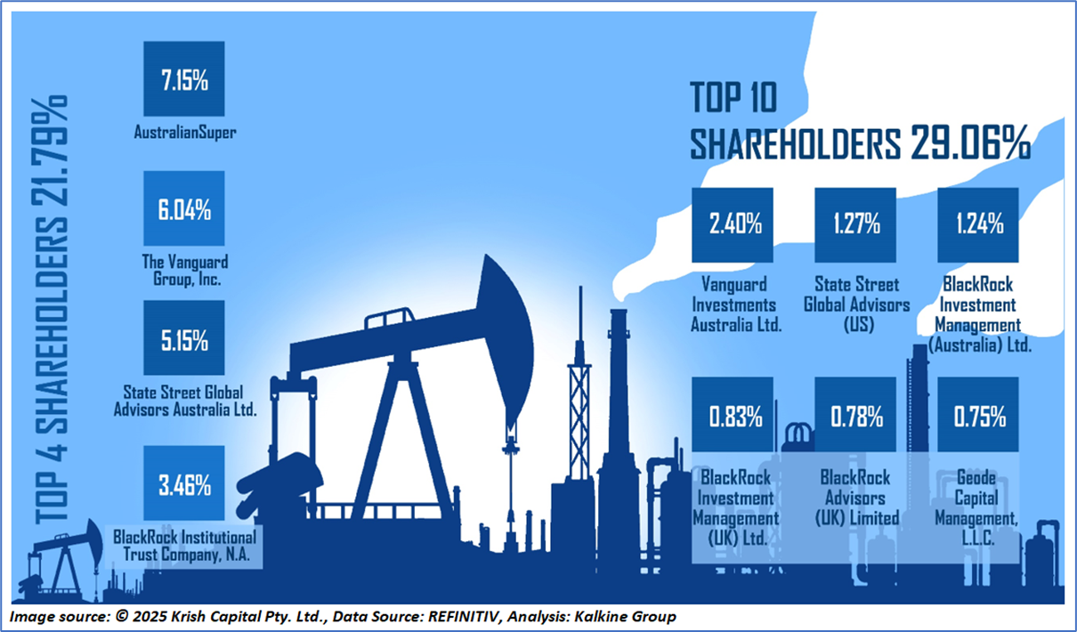 The top 10 shareholders together form ~29.06% of the total shareholding. AustralianSuper, and The Vanguard Group, Inc., hold maximum stakes in the company at ~7.15% and ~6.04%, respectively.
