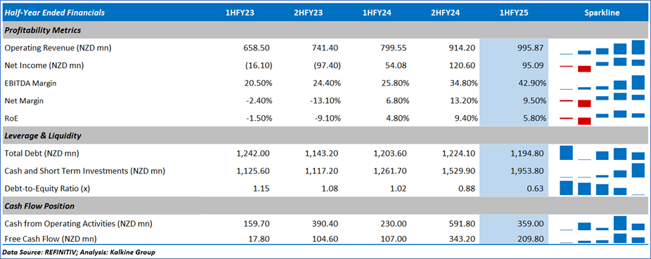 1.4: Key Metrics: XRO registered a fixed asset turnover ratio of 8.02x in 1HFY25 compared with the industry median of 2.70x. Below is captured the metrics showing the trend of EBITDA margin and operating revenue since 1HFY23:
