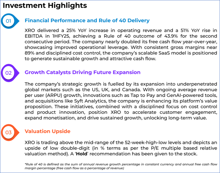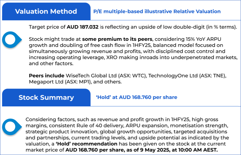 The stock price has gone up by ~14.86% in the last one month and over the last six months, stock prices gained ~5.73%. The stock has a 52-week low and 52-week high of AUD 119.750 and AUD 188.300, respectively, and is currently trading above the mid-range of the 52-week-high-low levels. XRO was last covered in a report dated ‘7 March 2025’.