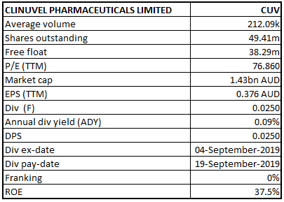 Decent Top-line and Bottom-line Performance for FY19:Clinuvel Pharmaceuticals Limited (ASX: CUV) is an Australia based biopharmaceutical company, devoted to the enhancement of treatments for skin diseases. Recently, the company informed the market about the submission of its application for its drug SCENESSE® (afamelanotide 16mg) to be registered in the Australian Register of Therapeutic Goods (ARTG). The application has been submitted to the Australian Therapeutic Goods Administration (TGA) for registration approval. Following registration, the drug will be made available to adult patients with erythropoietic protoporphyria (EPP) to prevent phototoxicity.