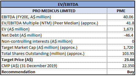 Stock Recommendation: The stock generated a whopping YTD return of 115.80% and is currently trading close to the average of its 52-week high and low level of $38.390 and $10.863, respectively. Its EBITDA margin and net margin improved from 58.3% and 29.4% in FY18 to 63.2% and 38.0% in FY19, respectively. In FY19, the company reported an improvement in profitability with a complete focus on its strategic plans. Moreover, the company is continuously investing on innovative products to position in the market. In the coming weeks, it will be showcasing its two specialities, i.e., Visage AI Accelerator and the Breast Density Algorithm at the RSNA 2019 meeting. Considering the above factors, we have valued the stock using EV/EBITDA multiplebased relative valuation method and arrived at a target price with single-digit upside (in % terms). Hence, we give a “Buy” rating on the stock at the current market price of $22.350, down 8.924% on 31 December 2019. The stock surged over 4% on December 30, 2019, on account of positive sentiments owing to the contract with Palo Alto based Nines.