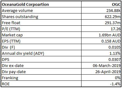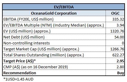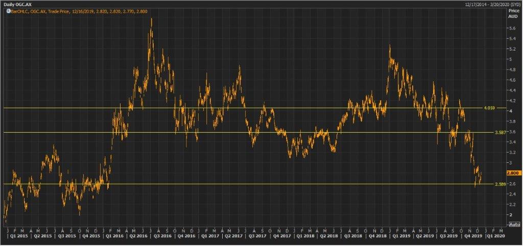 Stock Recommendation: As per ASX, the stock of OGC is trading close to its 52-week low of $2.520, proffering a decent opportunity for accumulation. For the quarter ended 30 September 2019, gross margin of the company stood at 41.3%, higher than the industry median of 7.5%. EBITDA margin of the company was 26% as compared to the industry median of 3.3%. This indicates that the company is managing its costs well and is capable of converting its revenue into profits. Thus, considering the current trading levels, improvement in gross and EBITDA margin and modest outlook, we valued the company using one relative valuation method, i.e., EV/EBITDA multiple, and arrived at a target price high single-digit upside (in percentage terms). Hence, we recommend a “Buy” rating on the stock at the current market price of $2.800, up by 2.941% on December 16, 2019.