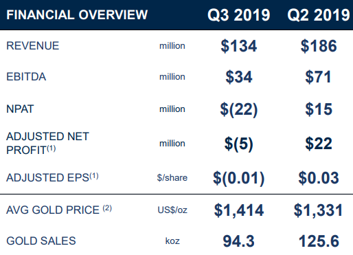 Track Record of Operational Improvements: The company witnessed a third consecutive quarter of operating improvements with respect to Haile. During the third quarter ended 30 September 2019, revenue of the company stood at $134 million, reflecting a fall from Q2FY19 revenue of $186 million.This fall was because of “nil” sales from Didipio, partially offset by the higher gold price received. The company had a similar quarter on quarter production at Haile & Macraes and produced 107.5 koz of gold at a group AISC (All in Sustaining Costs) of $1,122 per oz sold..png)