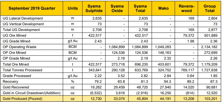 What to Expect: The company expects that the production guidance for the twelve months ended December 31, 2019 at 400,000oz of gold, affected by the shutdown of the Syama roaster, but intends to offset the lost production by processing oxide material through the sulphide circuit carbon in leach infrastructure. RSG anticipates that the group AISC for the twelve months to 31 December 2019 to be US$1,020 per ounce, up from previously US$960 per ounce. With respect to Ravenswood, December 2019 quarter will witness a suspension of operations at Mt Wright, and the commissioning of the third ball mill.