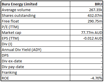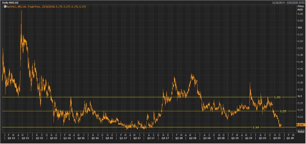 Stock Recommendation:The stock generated negative returns of 16.28% and 29.41% over the period of one month and three months, respectively. Currently, the stock is trading on the lower band of its 52-week trading range of $0.165 - $0.360. The company now owns a 100% stake in the Canning Basin, which makes the business highly attractive. BRU now intends to commence a wide ranging farmout process in 2020 after the completion of a prospect and regional scale technical review. It will focus on further exploration to identify the potential at the basin. The stock has an EV/Sales multiple of 1.6x, which is lower than the industry median of 19.1x, indicating the undervalued position at the current juncture. Considering the above factors in combination with the outlook, we give a “Speculative Buy” rating on the stock at the current market price of $0.175, down 2.778% on 16 December 2019.