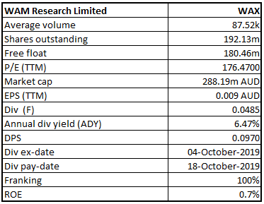 Dividend Growth:In FY19 (year-end 30 June 2019), WAM Research Limited recorded operating profit before tax of $0.4 million and operating profit after tax of $1.6 million, significantly lower than the last year numbers, due to the heightened volatility in the Australian equity market. Despite this, the company’s Board continued to enhance shareholder returns through the payment of fully franked dividends of 9.7 cents per share in FY19. Ever since the company formed, WAM Research has paid 104.30 cents per share in fully franked dividends to its shareholders. The company currently has an annual dividend yield of 6.47%..png)