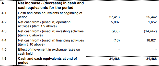 Quarterly Update for 31 March 2020: In a recent update, the company revised its cash expenses for estimation for 4QFY20 to be ~3 million.At the end of the quarter, ended 31 March 2020, the company had a cash balance of $3.5 million. Net cash used in operating activities, for the quarter ended 31 March 2020, came in at $1.9 million after making major payments for staff costs and administration, and corporate costs of $2.5 million, and $875K, respectively.