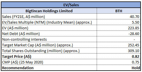 EV/Sales Multiple Based Relative Valuation Approach (Source: Refinitiv, Thomson Reuters)