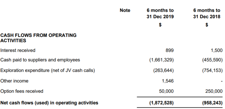 Cash flow Position: During the six months ended 31 December 2019, the company used around $1.87 million of cash for operating activities. This included $1.66 million paid to suppliers and employees. As at 31 December 2019, the company has a cash and cash equivalent of around $6.12 million. For the half year period, the company reported a revenue of $52,445 and loss of $1.55 million.