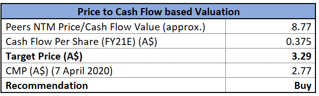 Stock Recommendation: The stock is trading near to its 52 weeks low price of $3.750, offering investors a decent opportunity for accumulation. The stock has corrected ~42.31% and ~36.46% in the last three months and six months, respectively. The company remains on track to improve its retail business, by enhancing the customer experience and growing new revenue streams. We have valued the stock using a P/E Multiple based relative valuation method and arrived at a target price of lower double-digit growth (in % terms). For the said purpose, we have taken peers like AGL Energy Ltd (ASX: AGL), Santos Ltd (ASX: STO) and Oil Search Ltd (ASX: OSH). Considering the aforesaid facts, H1FY20 performance, balanced outlook amid covid-19 crisis, and current trading levels, we give a “Buy” recommendation on the stock at the current market price of $4.88, down 1.414% on 7 April 2020.