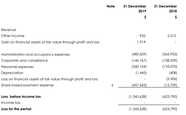 Proposal for Capital Raising: Galan Lithium Limited (ASX: GLN) is involved in the exploration for lithium and other metals. The market capitalisation of the company stood at $23.58 Mn as on 3rd April 2020. Recently, the company has announced a capital raising of $550,000 through a fully subscribed private placement at a price of 14 cents per share, which reflects a discount of 3.6% to the last closing price. It has received firm commitments from professional and sophisticated investors and others for the same. It will utilise the funds for continuing scoping and Pre-Feasibility studies (PFS), the commencement of further resource work as well as for working capital purposes. The below picture gives an overview of the consolidated financial statement:.png)