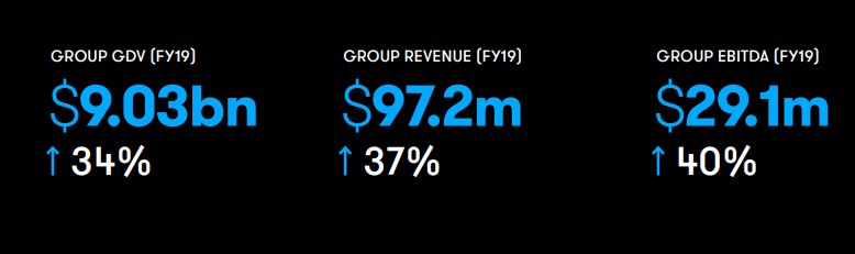 Key Highlights of FY19 for the Period Ended June 30, 2019: The Group’s gross domestic value (GDV) in FY19 came in at $9.03 billion, up 34% year over year. The company reported revenue of $97.2 million, up 37% year over year. EBITDA for the period stood at $29.1 million, up 40% year over year. NPAT for FY19 came in at $8.45 million, representing a substantial increase of 283% year over year.