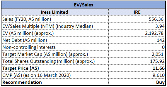 Stock Recommendation: As per ASX, the stock of IRE is trading close to its 52-week low of $9.390, proffering a decent opportunity for accumulation. During FY19, gross margin of the company stood at 91.6%, higher than the industry median of 71.8%. In the same time span, ROE of the company was 15.2% as compared to the industry median of 9.7%. Considering the current trading levels, higher gross margin and ROE and decent financial performance, we have valued the stock using EV/Sales multiple based valuation method and have arrived at an upside of lower double-digit (in percentage terms). Hence, we recommend a “Buy” rating on the stock at the current market price of $9.610, down by 8.389% on 16 March 2020.