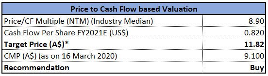 Price to Cash Flow Based Multiple Approach (Source: Thomson Reuters), *1USD=1.62 AUD