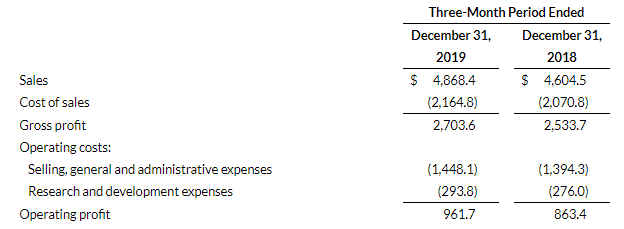 4QFY19 Financial Highlights for the Period ended 31 December 2019: During the quarter, DHR reported adjusted earnings of $1.28 per share, up 12.3% from the year-ago quarter’s figure of $1.14. Net sales during the quarter stood at $4,868.4 million, an increase of 5.7% year over year. Selling, general and administrative expenses for the period increased 3.9%, whereas research and development expenses soared 6.4% year over year. The company reportedoperating income of $961.7 million, up 11.4% year over year. The company exited the period with cash and cash equivalents of $19,912.3 million, with long-term debt amounting to $21,516.7 million.