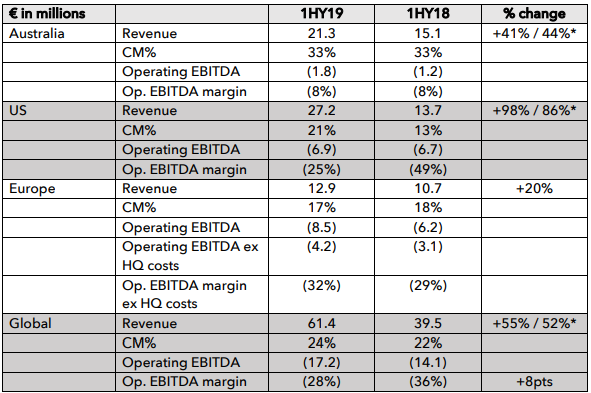 H1FY19 Key Financial Highlights for the period ended June 30, 2019:Annualised revenue run-rate increased by 55% to over A$200 million, as compared to the previous corresponding period. This can be attributed to major revenue gain in the second quarter. The number of active customers increased by 38% (y-o-y) to 172,000, while customer acquisition costs remained flat for the period.