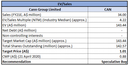 EV/Sales Multiple Based Relative Valuation Method (Source: Thomson Reuters)