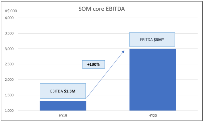 1HFY20 Highlight:During the first half ended 31st December 2019, the company reported core revenue growth of 15% on pcp and EBITDA growth of 130%. In terms of regional growth, North America reported the highest growth in revenue of 26%, followed by APAC and Europe, with growth rates of 11% and 10%, respectively. Cash in hand at the end of the period stood at $8.9 million..png)