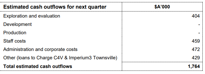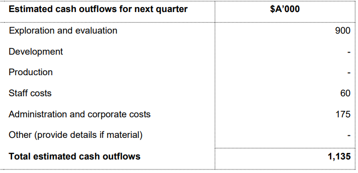Cash Flow Guidance: As per the guidance for Q2FY20, the company estimates a cash outflows of $1.764 million, which includes $0.404 million of exploration and evaluation expense, staff costs at $0.459 million and administration and corporate costs at $0.472 million.