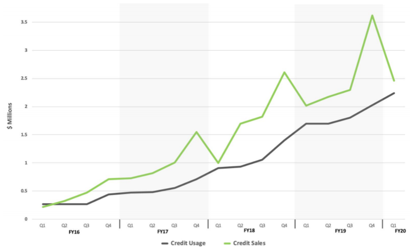 The company achieved record credit usage of $2.24 million with record cash receipts of $3.53 million in Q1FY20. Net cash outflow for the quarter stood at $1.946 million as compared to $1.519 million in Q4 FY19.