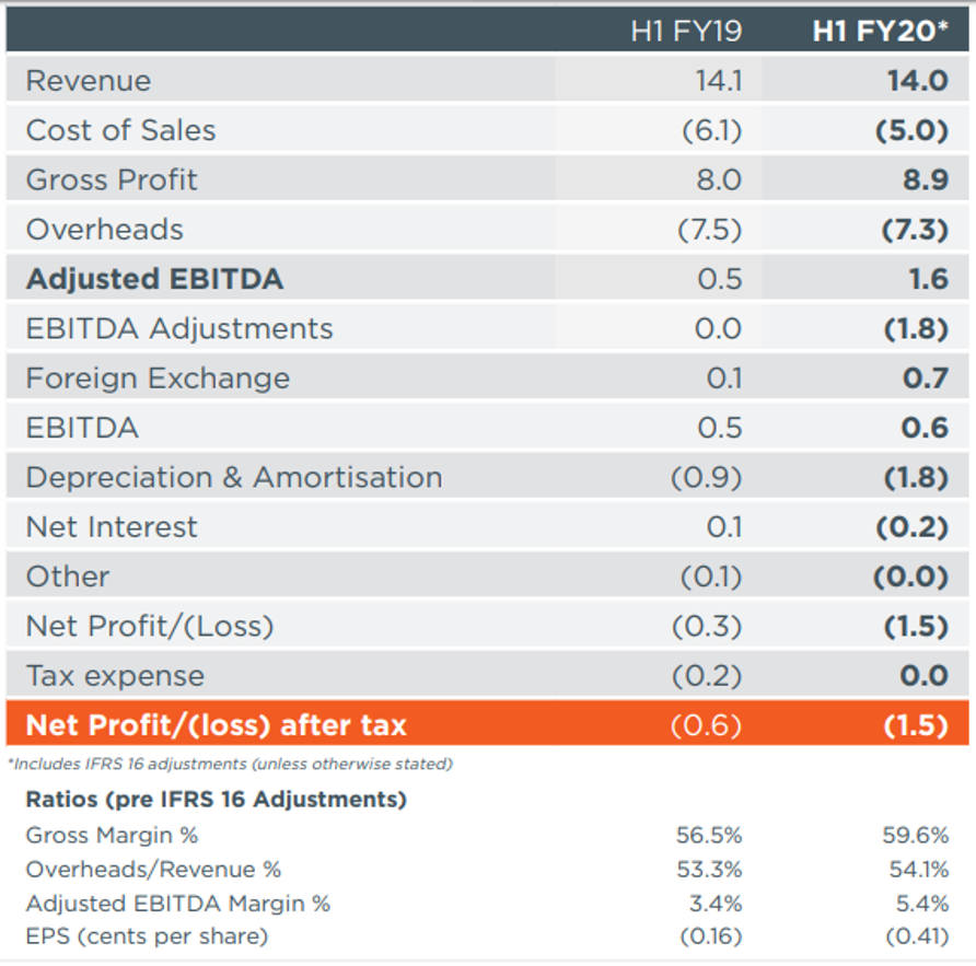 1HFY20 Performance Highlights: During the half year ended 31st December 2019, the company reported robust results on the back of continued growth in software sales. The company has expanded the reach of its Dante enable products, with 147 new products released recently at a tradeshow, taking the number of products available in the market up by 35%. During the half, revenue came in at $16.1 million, up 14% on the prior corresponding period. During the period, the company marked a shift in the product mix to a larger proportion of high margin software sales, that provided a boost to gross margin..png)