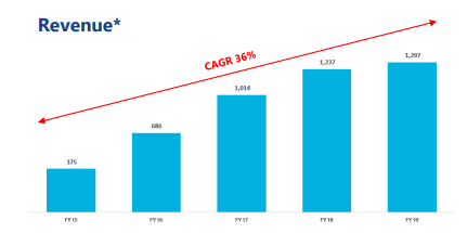 Acquisition of Two New Businesses:Bapcor Limited (ASX: BAP) is engaged in the distribution of automotive aftermarket parts and has a market capitalisation of A$1.83 Bn as on 11th December 2019. The company via a release dated 1st November 2019 announced that it has inked agreements to purchase Truckline and Diesel Drive. Truckline is a Heavy commercial truck spare parts business having 22 branches throughout Australia. The release also stated that Diesel Drive is a business which specialises in the sale of Japanese commercial truck spare parts. The purchase price of both businesses stood at around $48 Mn, which would be financed via the existing debt facilities. The businesses are anticipated to achieve a return on investment of at least 15% and enhance earnings per share in the first full year of operation, i.e., FY2021. The below picture depicts an idea of CAGR growth in revenue:.png)