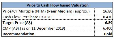 Stock Recommendation:The company is building for the future by undertaking significant technology as well as infrastructure investments in the areas of warehousing, retail point of sale and information technology. The company has been looking for appropriate opportunities in order to enhance its business which deliver shareholder value, while being in line with the strategy as well as disciplined acquisition criteria. We have valued the stock using Price to Cash Flow valuation multiple, which is offering target price which is giving an upside of of lower-single digit (in percentage terms). Hence, considering the decent performance in FY19, acquisition of new businesses, CAGR growth of 42% and 18% in NPAT and dividends during time span of FY15-FY19, respectively, we maintain a “Hold” rating on the stock at the current market price of A$6.400 per share, down 0.621% on 11th December 2019.