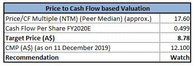 Stock Recommendation: The company declared a fully franked final dividend amounting to 15 cps, this brought the full year dividend to 33 cents per share. LOV’s balance sheet remains strong and reflects the significant investment made during the year into the rollout of stores. We have valued the stock using Price to Cash Flow based valuation and have arrived at the target price, indicating that the stock price might witness a fall, moving forward. Therefore, we have a watch stance on the stock at the current price of A$12.100 per share, up 0.666% on December 11, 2019.