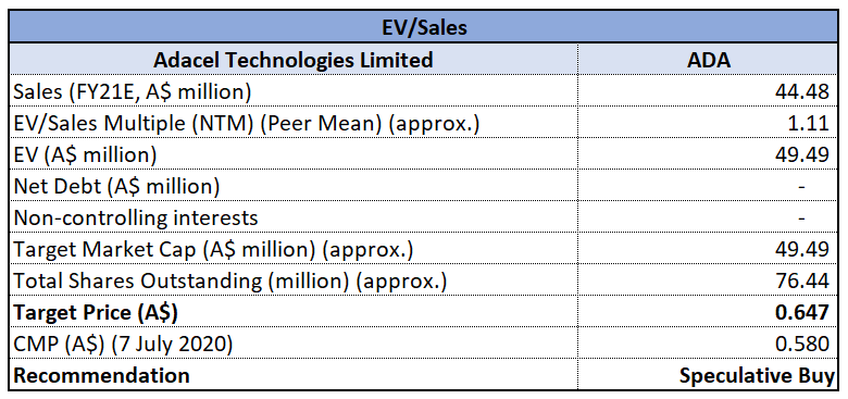 EV/Sales Multiple Based Relative Valuation (Source: Refinitiv, Thomson Reuters)