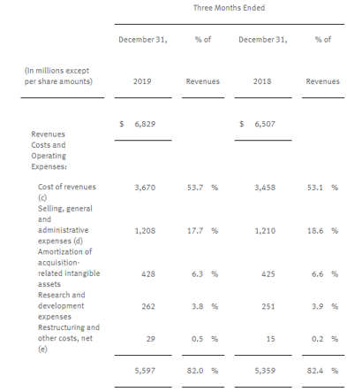4QFY19 Financial Highlights for the Period ended 31 December 2019: During the quarter, the company reported adjusted EPS of $3.55, up ~9% year over year. The company reported revenues of$6.83 billion, up 5% from the prior corresponding period. Organic revenues for the quarter increased 5% year over year. Nevertheless, currency translation negatively impacted total revenues by a slight 1%. The company exited the period with a cash balance of $2.34 billion.