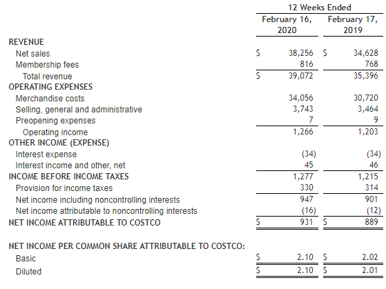 3QFY20 Financial Highlights for the Period ended 16 February 2020: During the quarter, the company reported earnings of $2.10 per share, up 4.5% from the year-ago quarter figure. Total revenues for the quarter stood at $39,072 million, an increase 10.4% year over year. The company exited the quarter with cash and cash equivalents of $7,786 million and long-term debt amounted to $5,099 million.