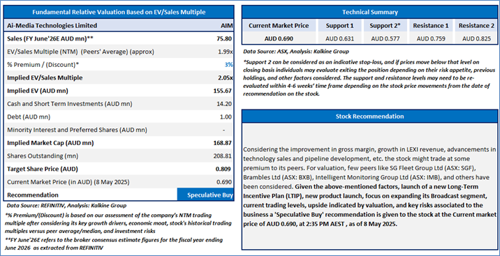 Section 2.0: Ai-Media Technologies Limited (‘Speculative Buy’ at AUD 0.690, current market price per share as on 8 May 2025)
