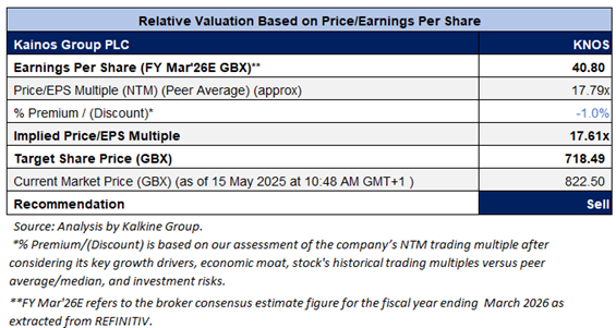 Given its current trading levels, Flat Outlook and Lowered Guidance Undermine Growth Confidence, recent rally in the share price, relative valuation, and associated risks, it is prudent to exit the stock at the current levels. Hence, a ‘Sell’ recommendation is given on the stock at the current Market Price of GBX 822.50 as of 15 May 2025 at 10:48 AM GMT+1.
