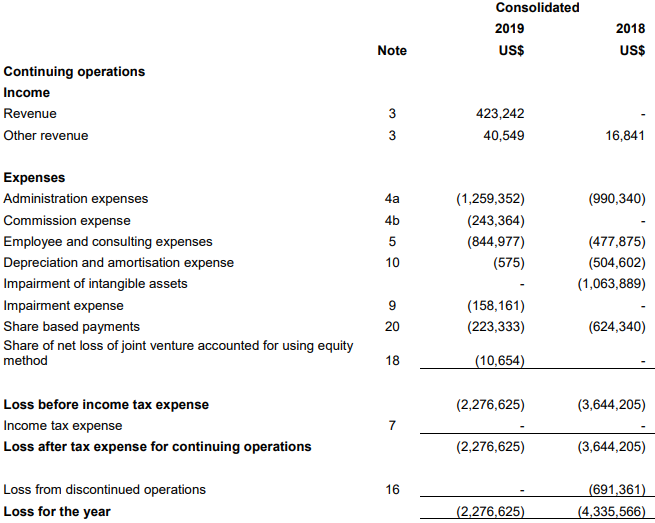 Substantial Rise in Revenue: During the quarter ended 30 September 2019, without dilution to the company’s fully diluted capital structure, it managed to raise $2.68 Mn after the exercise by the institutional and other investors of 53.65 Mn $0.05 options. For the year ended 30 June 2019, revenue of the company stood at US$463,791, up from US$16,841 in FY18..png)
