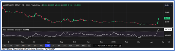 Considering that the stock has surpassed its R2 level, share price movement, current trading level, and risks associated, the share price can face consolidation at the current levels. Hence, a ‘Sell’ recommendation is given on the stock at the current price of AUD 0.695, as of 16 April 2025, at 11:50 AM AEST).