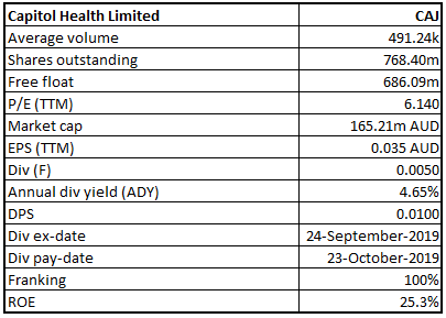 Higher Investments in Research & Product Development to Aid Business Prospects:Capitol Health Limited (ASX: CAJ) is engaged in providing diagnostic imaging services to the healthcare market in Australia. The company owns and operates clinics in Victoria, Western Australia, Metropolitan Melbourne and Tasmania.