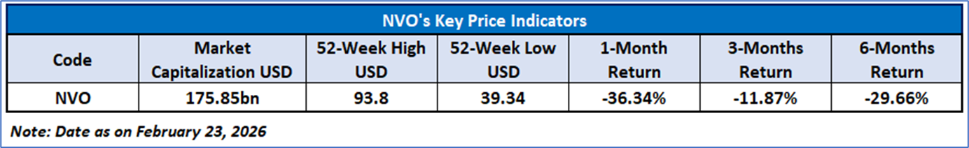 Novo Nordisk A/S (NYSE: NVO) is a global healthcare company engaged in diabetes care. The Company is also engaged in the discovery, development, manufacturing and marketing of pharmaceutical products. The Company operates through two business segments: diabetes and obesity care, and biopharmaceuticals. The Company's diabetes and obesity care segment covers insulin, GLP-1, other protein-related products, such as glucagon, protein-related delivery systems and needles, and oral anti-diabetic drugs.