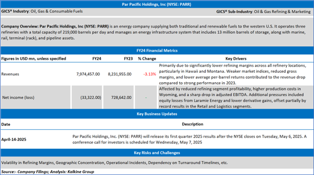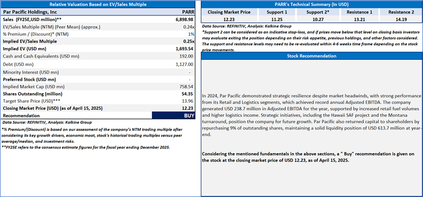 Section 2.0: Par Pacific Holdings, Inc (NYSE: PARR) (Buy at USD 12.23, closing market price as of April 15, 2025)