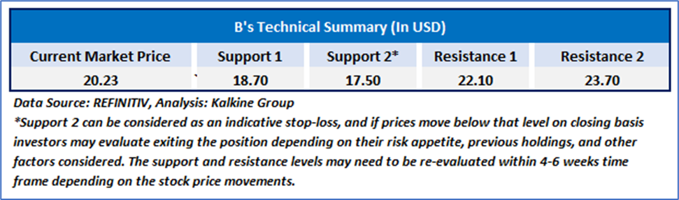 Barrick Mining Corporation (NYSE: B) formerly Barrick Gold Corporation, is a gold and copper producer, which is engaged in the production and sale of gold and copper, as well as related activities, such as exploration and mine development.