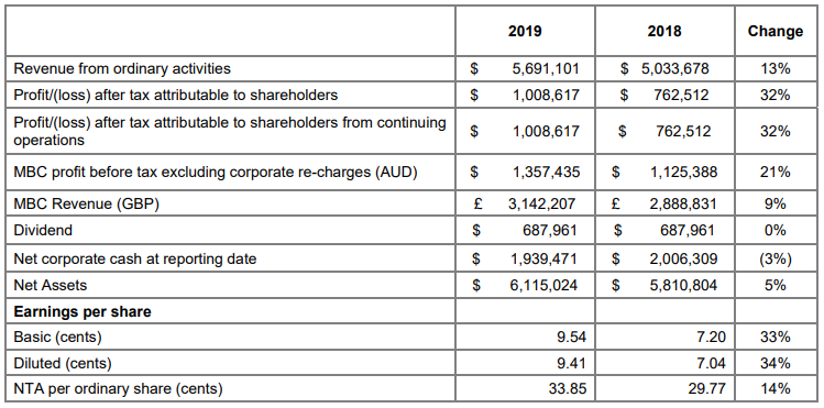 Substantial Rise in Profit: ICSGlobal Limited (ASX: ICS) is a holding and investment company, which operates a medical billing service in the UK. As on 06 December 2019, the market capitalisation of the company stood at $21.22 million. In the recently held Annual General Meeting of the company, the top management addressed its shareholders and stated that revenue of the company has gone up by 13% to $5.69 million in FY19 and net profit after tax stood at $1 million, up by 32% on prior period. The company also reported astrong financial position and has a corporate cash of $1.95 million at the year end, after paying dividends of $687,961. In the time span of 5 years from FY15 to FY19, the company has witnessed a CAGR of 10.26% in revenue and a CAGR of 10.37% in gross profit.