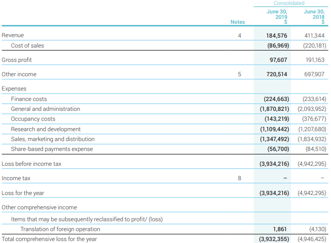 Stock Recommendation: As per ASX, the stock gave a return of 144.44% in the past 3 months and a return of 175% in the last one month. The stock has witnessed high volatility in the last five trading sessions and has corrected 24.14%. In terms of valuations, the stock is trading at an EV/Sales multiple of 62.2x, higher than the industry median (Healthcare) of 8.7x on TTM basis. Thus, considering the substantial gain in the last one and three months, recent volatility in stock price and stretched valuation, we recommend a “Sell” rating on the stock at the current market price of $0.022, down by 26.667% on December 06, 2019.