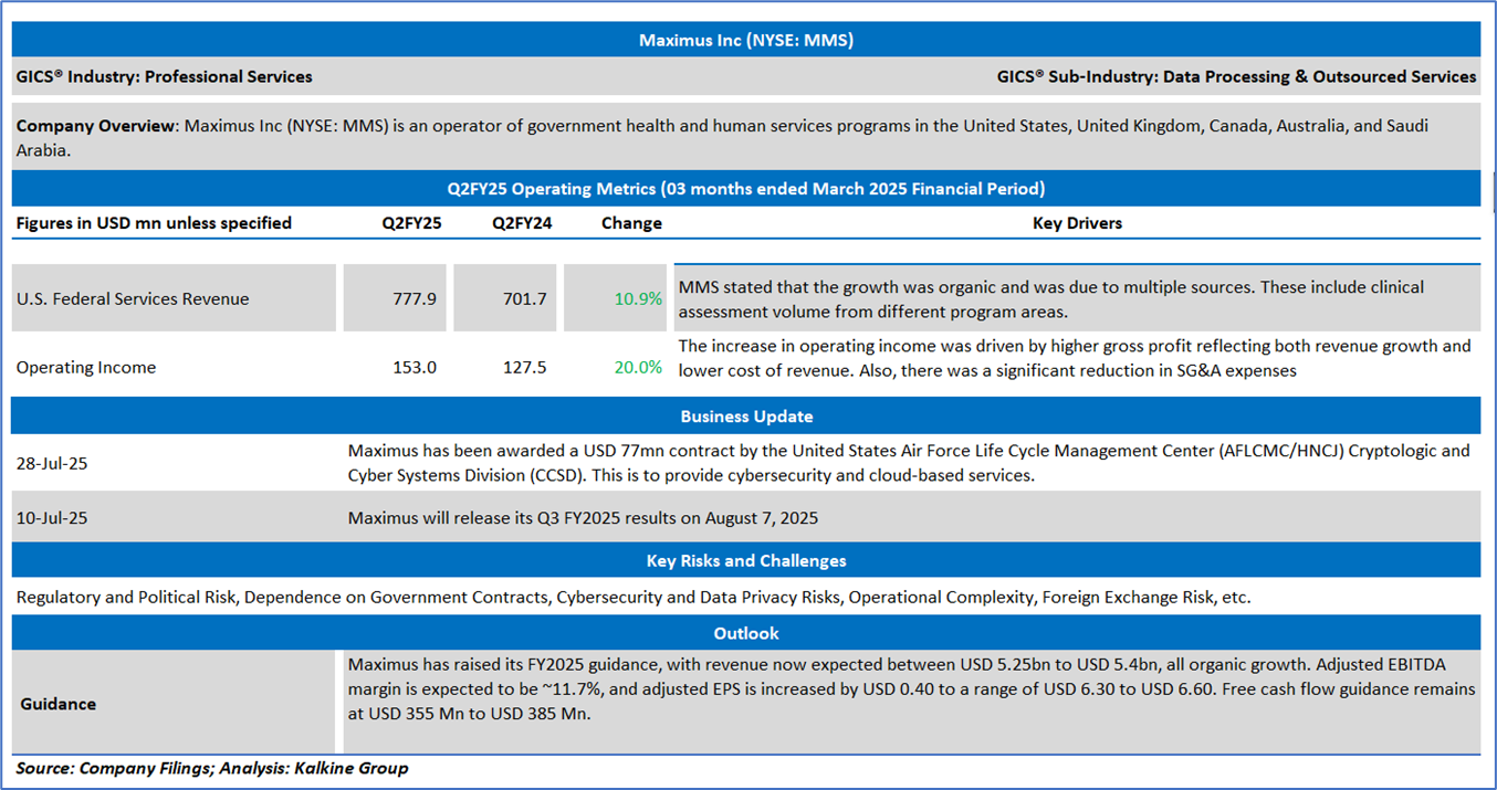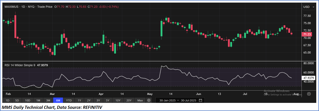Section 2.0: Maximus Inc (NYSE: MMS) (‘Buy’ at USD 71.230 Closing Market Price as on 30th July 2025)